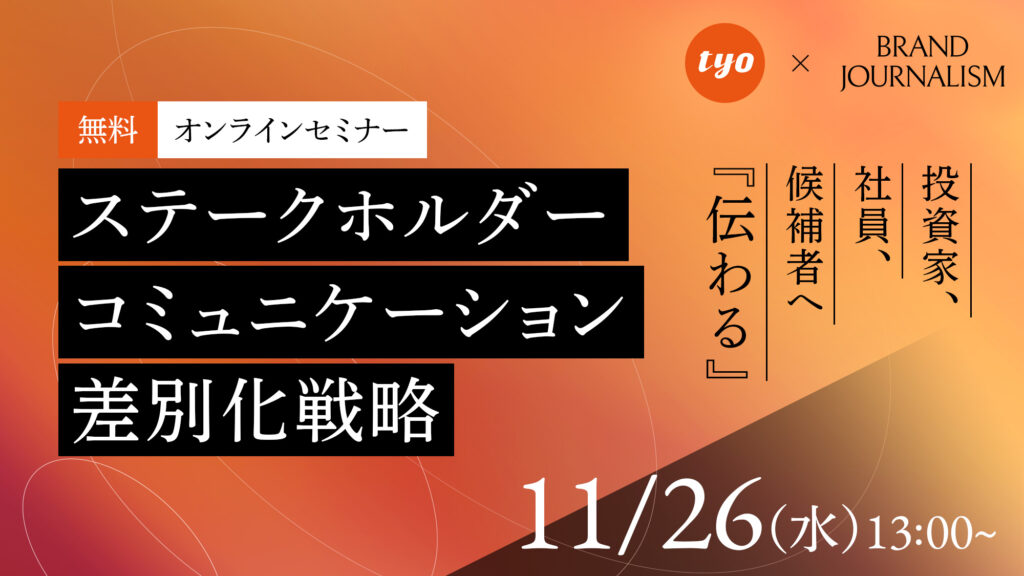 また、両社共催で無料オンラインセミナー 「投資家・社員・候補者へ『伝わる』ステークホルダーコミュニケーション差別化戦略」を2025年11月26日に実施いたします。